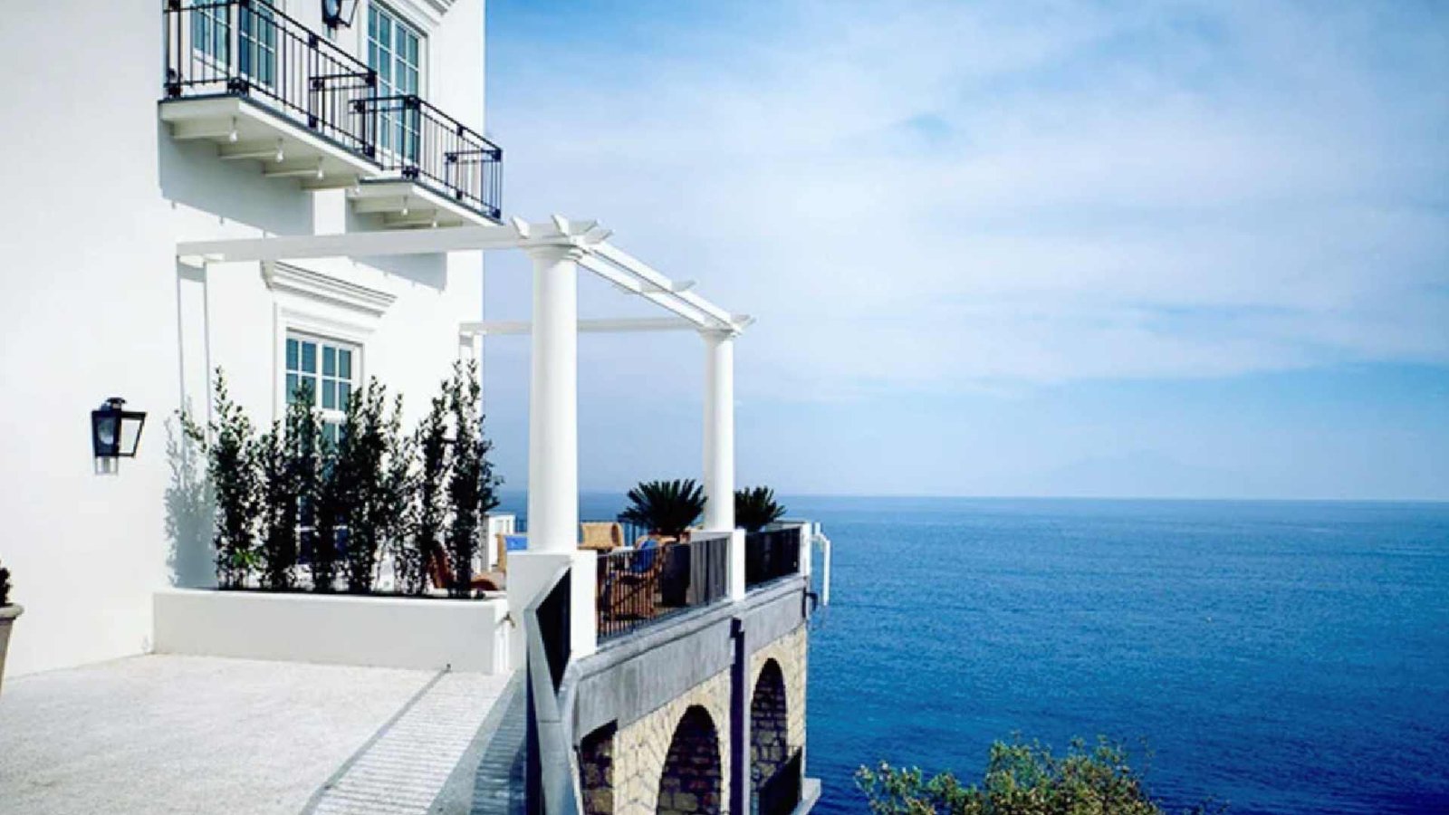 Capri, a noble beauty, sits demurely waiting for us like a sphinx. The first thing we spot is the gleaming white Villa Fersen, teetering on the cliff’s edge. We have arrived. The hydrofoil pulls into the Marina Piccola; the plank is dropped. Weekend bags are grabbed at the dock by seersucker-clad JK Placers, who have a car waiting, and we are whisked away up a steep narrow road and down a discreet driveway. Like Jacques d’Adelswärd-Fersen’s art nouveau villa, JK Place is set into the cliffs – the only Capri hotel built directly on the coast.