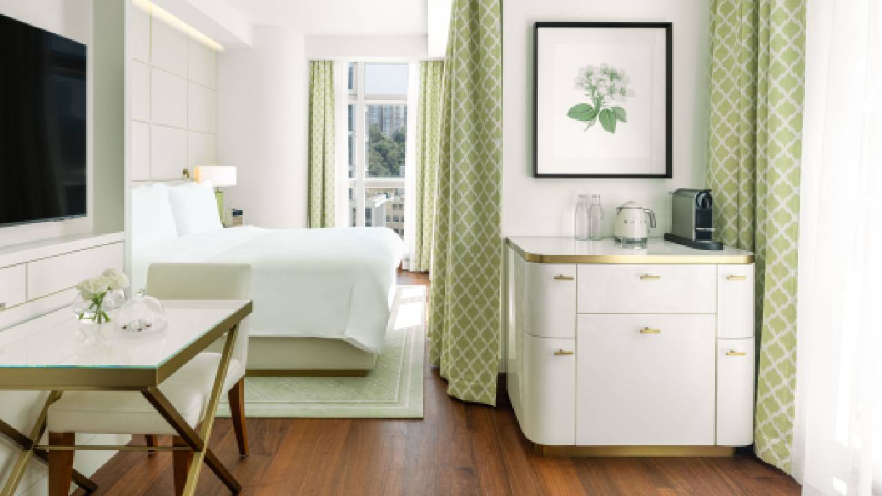 The guestrooms are generous by local standards, and intentionally serene. Think: muted palettes, plush bedding, and thoughtful touches such as blackout blinds and rainfall showers. Large windows frame the city’s layered skyline, old tenements nudging up against slender glass towers reminding you that while Lanson Place may provide respite, the pulse of Hong Kong is never far.